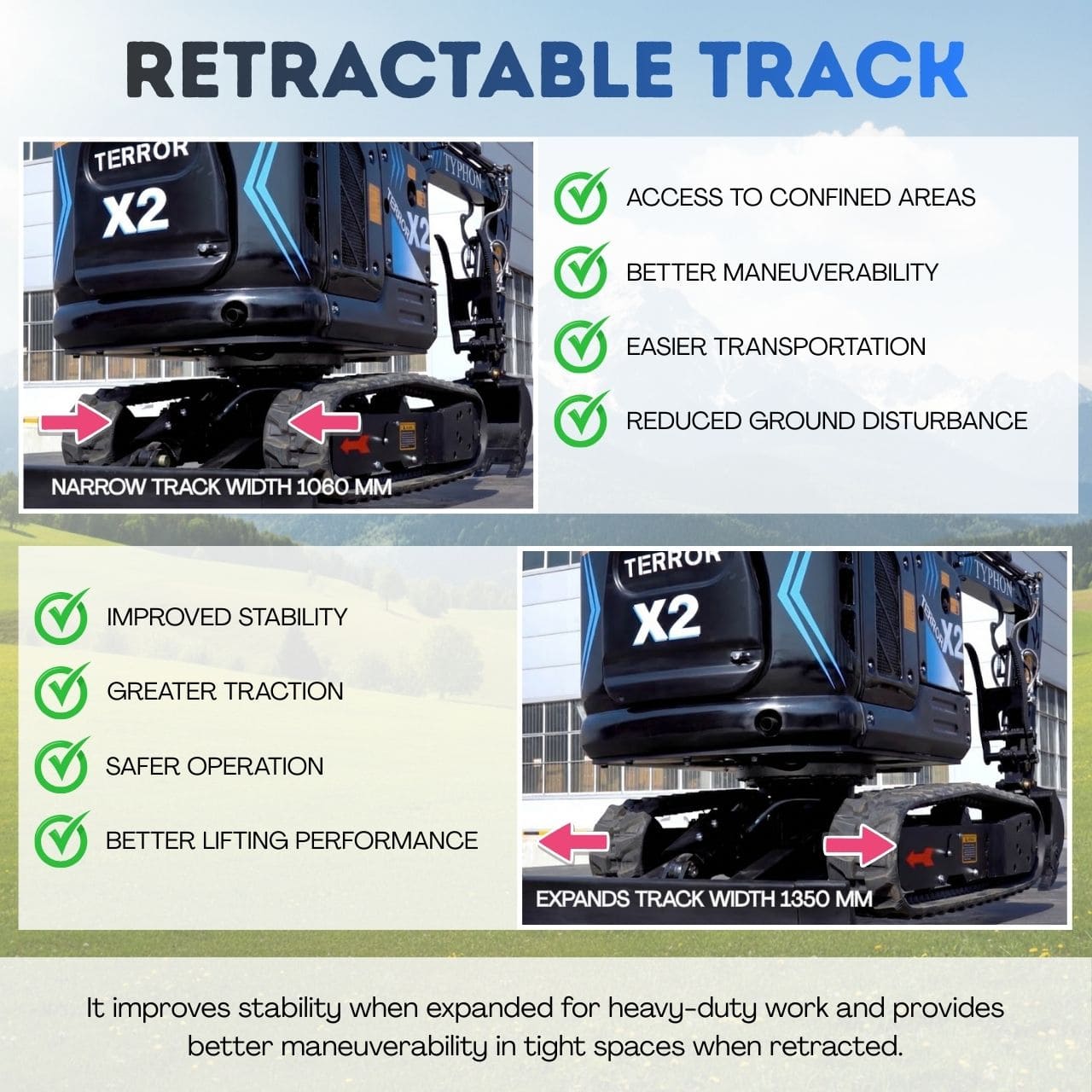 The TYPHON TERROR X2 MAX combines compact size, reliable diesel power, and versatile performance, making it ideal for trenching, landscaping, drainage work, foundations, and small construction projects. π