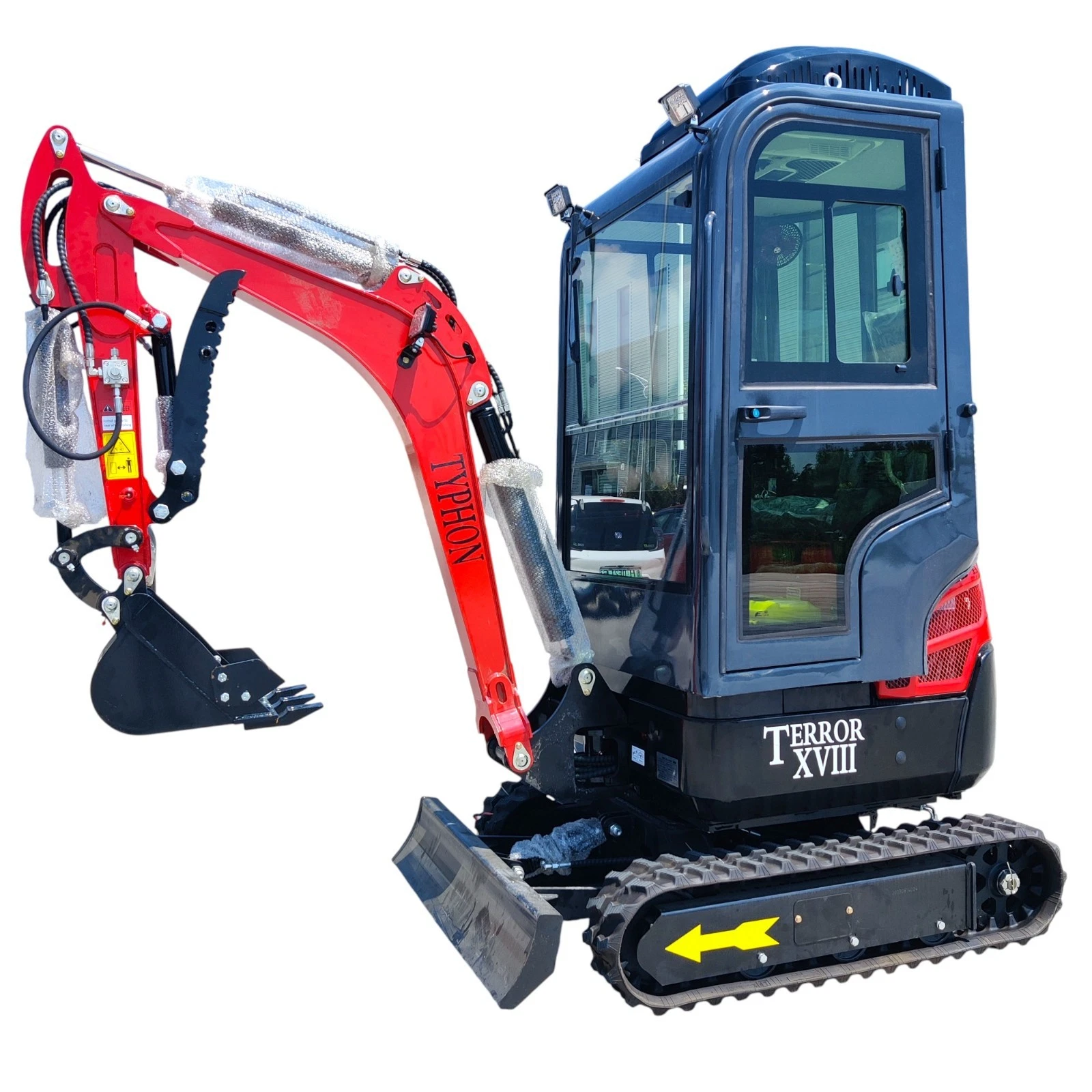 Most mini excavators force you to choose between power and precision β or between size and versatility. The TYPHON TERROR XVIII Prestige gives you all of it. At just 1,100 mm wide, it fits where full-size machines can't. With a Kubota D902 diesel engine, enclosed AC cabin, and 13 interchangeable attachments, it outperforms machines twice its size.